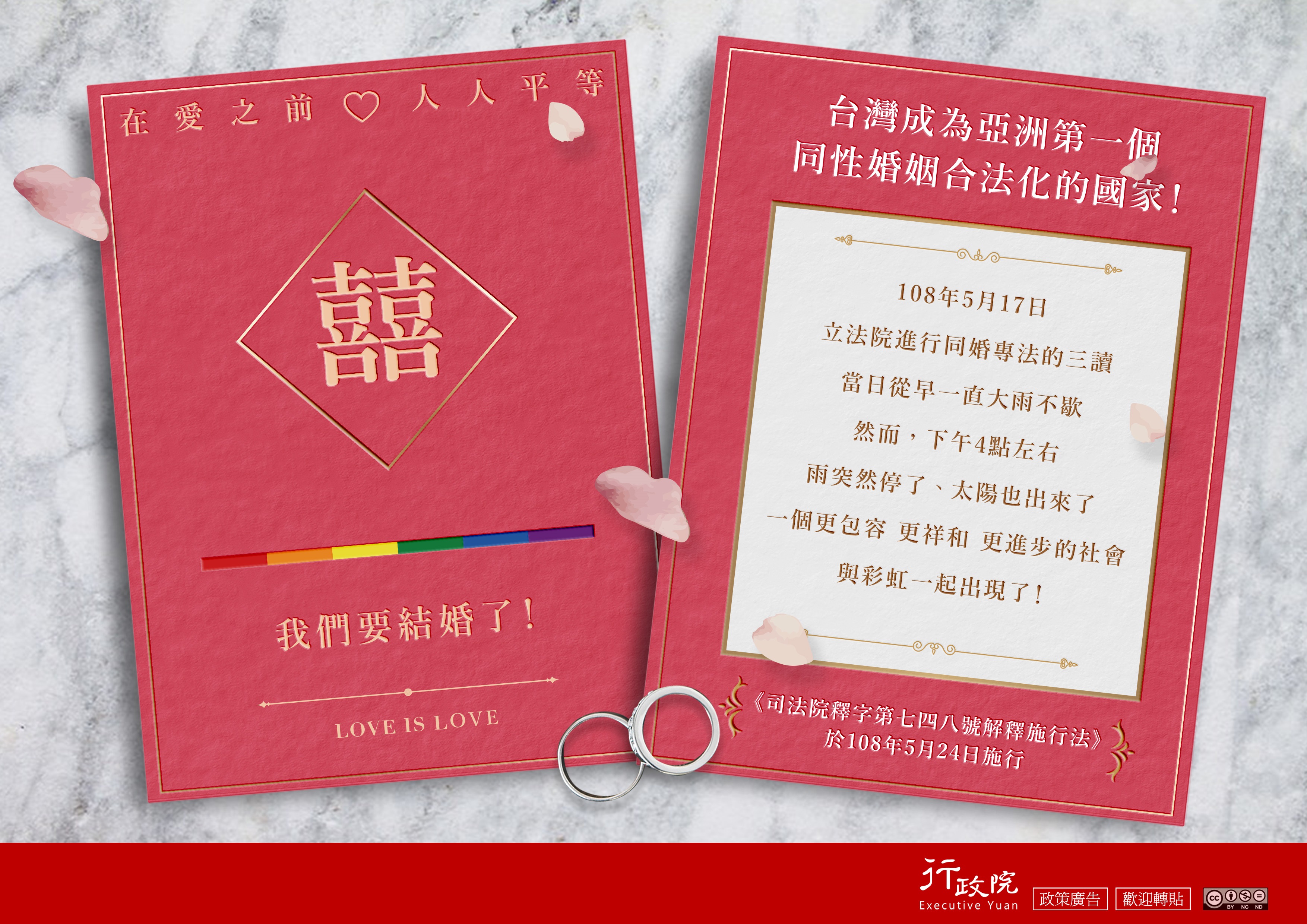 - 讓台灣成為亞洲第一個同性婚姻合法化的國家